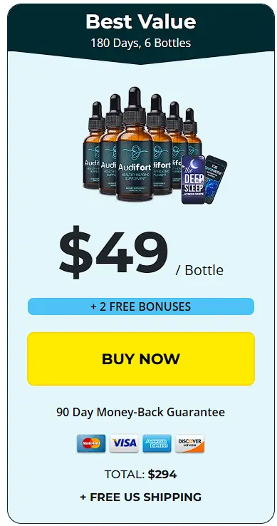 Quality sleep plays a vital role in supporting both hearing and brain health. To help you achieve this, every 3- or 6-bottle order of Audifort comes with a free bonus guide: The Deep Sleep Activation Protocol. This step-by-step resource is designed to help you fall asleep quickly, enjoy deeper rest, and wake up energized—allowing your body to naturally repair and restore itself while you sleep.